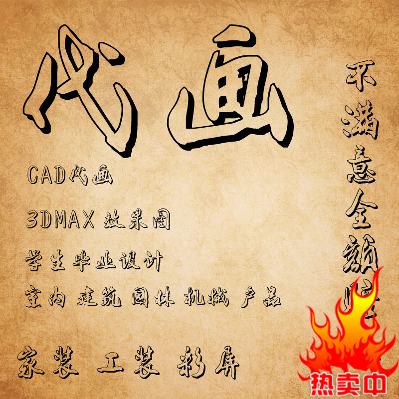 CAD代画 建筑室内园林施工图 3d效果图制图描图画图作业设计彩屏