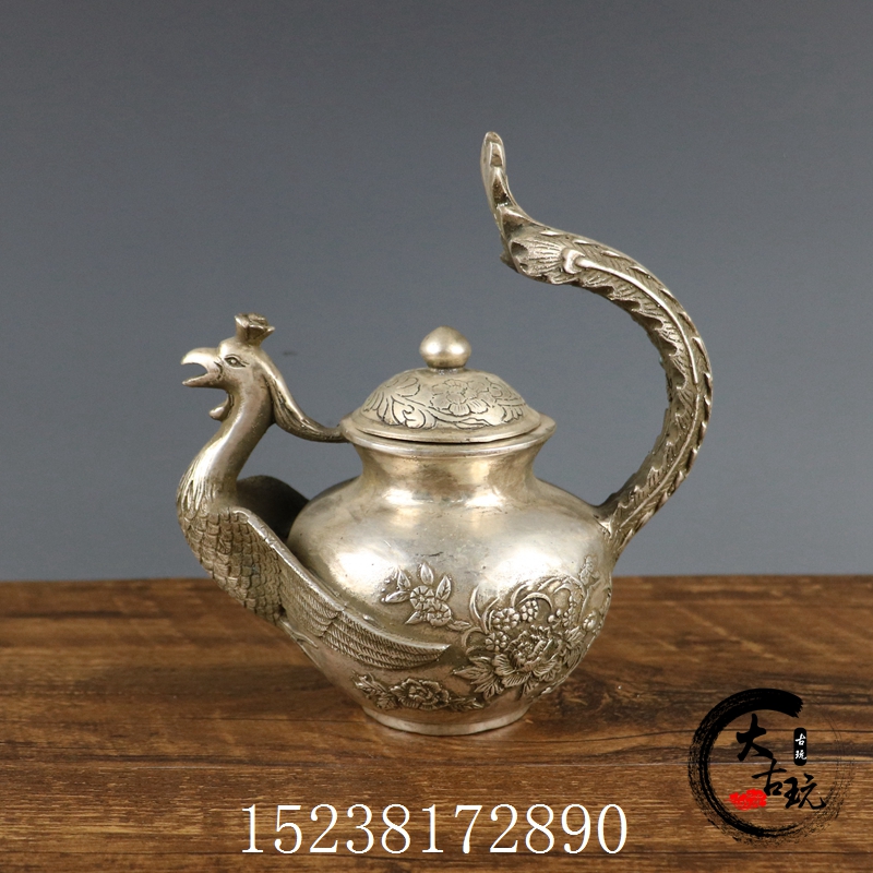 热卖仿古纯黄铜鎏银凤凰茶壶工艺品摆件家居装饰影视道具摆设杂件热门设计联盟服务商