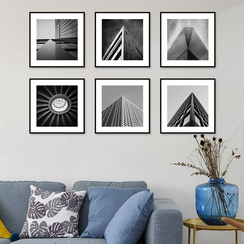 黑白灰风格装饰画建筑几何现代简约办公室工业风挂画客厅背景墙画热门设计联盟服务商