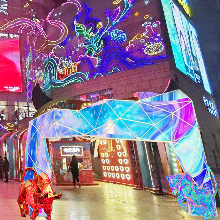 新年幻彩牛造型 春节美陈门头装饰 大型商场售楼中心广场拱门布置热门设计联盟服务商