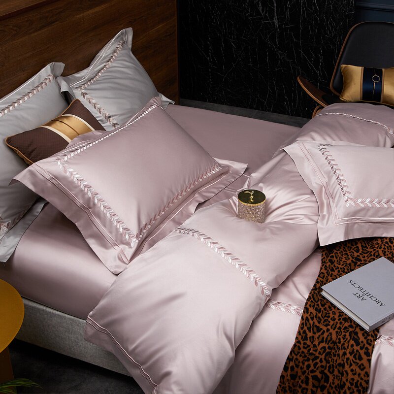 五星级酒店床上用品美式轻奢高档120支纯棉贡缎简约刺绣四件套热门设计联盟服务商