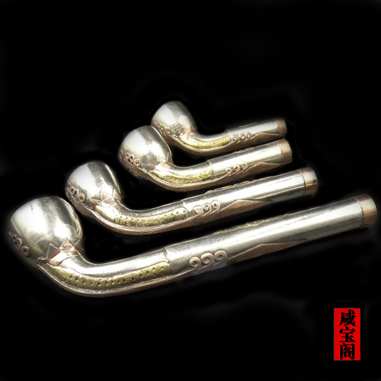 咸宝阁 传统老式镶花白铜烟锅精致加厚雕刻旱烟锅原创设计配件热门设计联盟服务商