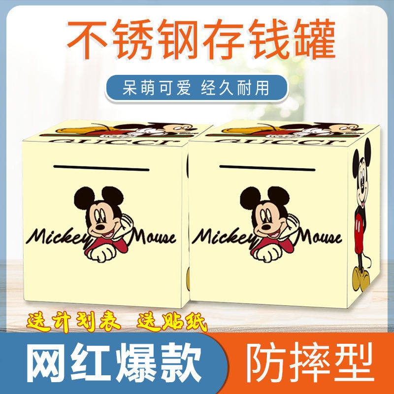 儿童不锈钢存钱罐小号卡通米奇贴图只进不出储蓄罐硬币存钱箱刻字热门设计联盟服务商